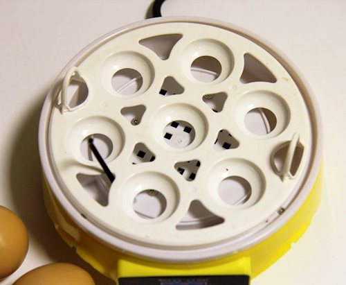 Под крышкой находится специальная подставка с углублениями, которые предназначены для устойчивого положения яиц. Подставка легко снимается, это нужно, чтобы периодически добавлять немного воды в кольцевую канавку для поддержания оптимальной влажности внутри прибора.